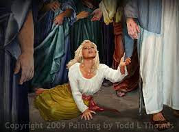 When all denied it, Peter and those with him said, "Master, the multitudes throng and press You, and You say, 'Who touched Me?' "46 But Jesus said, "Somebody touched Me, for I perceived power going out from Me." 47 Now when the woman saw that she was not hidden, she came trembling; and falling down before Him, she declared to Him in the presence of all the people the reason she had touched Him and how she was healed immediately.48 And He said to her, "Daughter, be of good cheer; your faith has made you well. Go in peace."
